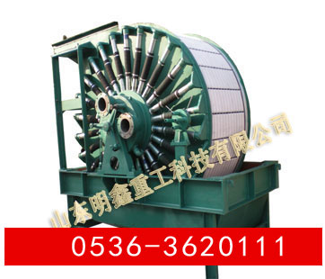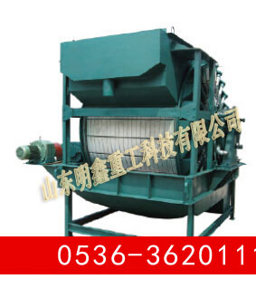 GZC真空永磁過濾機(jī)為上部給料的筒型外濾式真空永磁過濾機(jī),主要適用于對(duì)較粗顆粒強(qiáng)磁性物料的脫水。 筒體內(nèi)部裝有鍶鐵氧體****磁系,可促使磁性顆粒迅速吸附到濾布表面,磁濾機(jī)主要用于粒度較粗的強(qiáng)磁性礦物精礦礦漿的脫水,由于是上部給料,使得濾餅中精礦按粒度分層的效果更加明顯,當(dāng)磁性精礦形成濾餅時(shí),顆粒同時(shí)受到重力和磁力的作用,粗顆粒精礦比細(xì)顆粒精礦向?yàn)V布運(yùn)動(dòng)的快,精粒首先接觸濾布,故濾餅的透氣性好,而且礦漿中磁性顆粒在磁力吸引下呈放射狀布于圓筒表面,并由于磁系極性變化而產(chǎn)生磁攪動(dòng)作用,這都成為濾餅易脫水的有利條件,使得濾餅厚且透氣性好,顯著的提高了生產(chǎn)率,與同規(guī)格的筒形真空過濾機(jī)相比,其效率提高三倍以上。 該機(jī)礦漿中固相顆粒的比磁化系數(shù)不低于3000*10-6厘米/克,顆粒粒度為0.15-0.8毫米。給料濃度60%。 |