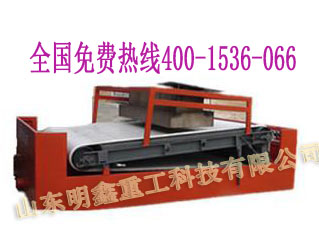平板磁選機(jī),采用帶式分選結(jié)構(gòu),在整個(gè)工作區(qū)域從進(jìn)料到出料,物料在皮帶的帶動(dòng)下,可對(duì)物料進(jìn)行多次磁攪拌,同時(shí)在水流的沖洗作用下,把不含磁的尾礦除去,帶有磁性的礦物被皮帶輸送到板選機(jī)的脫磁區(qū),從而將帶有磁性的礦物通過(guò)脫磁裝置脫掉,來(lái)完成選礦的過(guò)程,整機(jī)功率小、處理大,磁場(chǎng)強(qiáng)度高,并達(dá)到很好的品質(zhì),能夠獲得更大的效益。